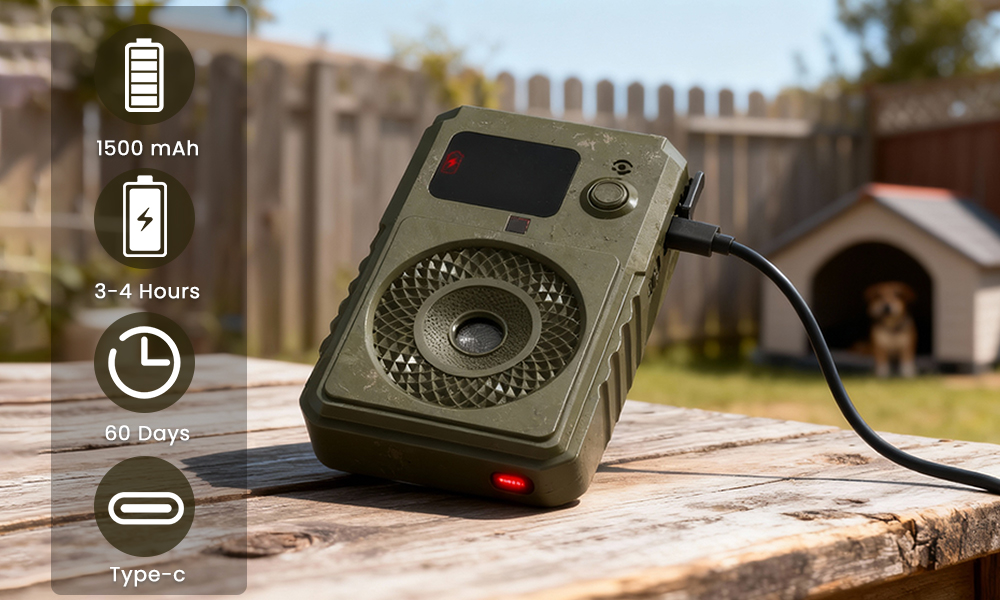 BarkSense Controller is USB-C rechargeable and lasts an incredible 30-60 days on a single charge-so you can enjoy long-term quiet anytime, anywhere without worrying about dead batteries.